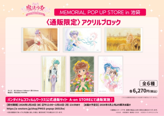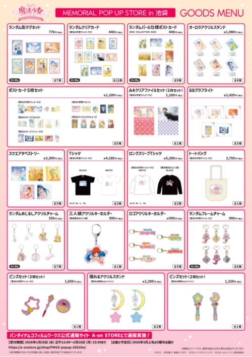 『魔法の天使クリィミーマミ』、『魔法の妖精ペルシャ』、『魔法のスターマジカルエミ』、『魔法のアイドルパステルユーミ』、『魔法のステージファンシーララ』のLD・DVD・Blu-ray等に使用されたメモリアルなイラストのグッズや、シリーズ最新作『魔法の姉妹ルルットリリィ』新商品を販売されます。