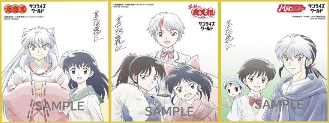 ▲菱沼義仁氏 描き下ろし複製ミニ色紙 絵柄:左から『犬夜叉』・『半妖の夜叉姫』・『TVアニメMAO』