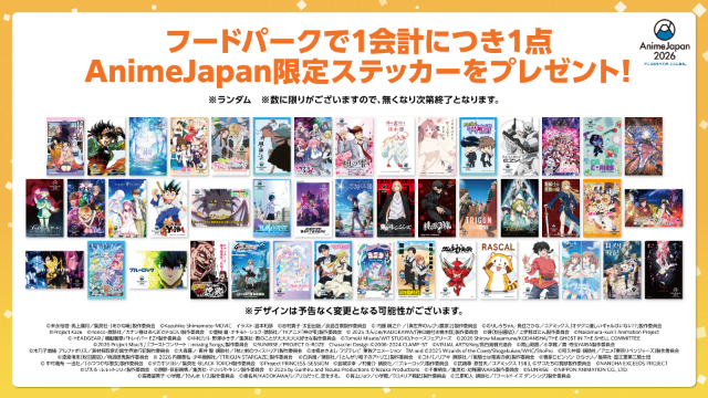 さらに、フードパークでは飲食メニューをご購入いただいた方に、全45種の AnimeJapan 限定ステッカーをランダムでプレゼント。そして、過去最大規模の会場を巡る、AJ スタンプラリーも開催されます。