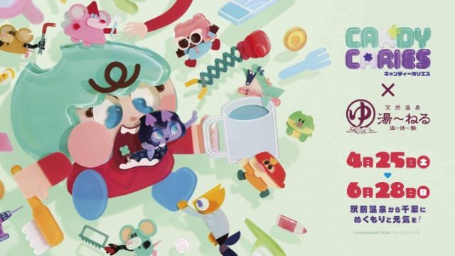 また、TVアニメの放送を記念して、千葉県習志野市にあり、漫画約20,000冊を設置している温泉施設「天然温泉 湯~ねる」とのコラボイベントの実施も決定! 期間は4月25日(土)~6月28日(日)となっており、期間中は、コラボロウリュ、展望風呂大画面スクリーン放映、限定グッズ販売など様々な企画で、アメとカリエスが『天然温泉湯~ねる』を大きく盛り上げる。詳しくは「湯~ねる」公式ホームページをチェック!
