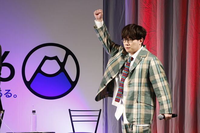 トップバッターに選ばれたのは豊永さんだ。会場が固唾をのんで見守る中、「大正から現代のお話ということで、タイムトラベル的な要素がございます。摩緒が大正時代のミステリーを菜花と共に追っていくという要素プラス、平安時代から続く摩緒たちの謎を解いていかなければいけないという物語、そんな妖怪奇譚をお楽しみください!」と26秒で回答をフィニッシュ。トップバッターにもかかわらず見事なタイムキープ力を発揮し、観客からは称賛の拍手が。