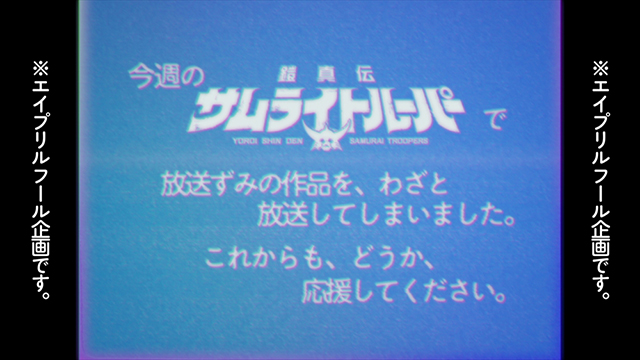 そしてこの事件を「エイプリルフール」企画として『鎧真伝サムライトルーパー』が再現!2026年3月24日に放送された第1クールの最終第12話を、3月31日にも再び放送し、放送後に過去のお詫び映像をオマージュしたCMが放映。