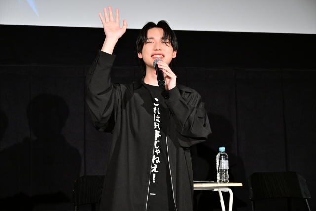 2人は本作を象徴するキャッチコピー「これは只事じゃねえ!」と書かれたお揃いの半袖シャツ着用で登壇。凱役の石橋は「みなさん、こんばんは!若です!本日は最高に楽しんでいきたいなと思っております!」と挨拶し、カマノスケ役の寺島も「みんな、盛り上がってる!?」と会場に呼びかけてトークショーがスタートした。
