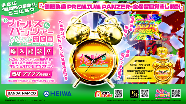 遊技機「eガールズ&パンツァー 最終章」に登場する演出の一つである金保留をモチーフにした目覚まし時計発売発売決定!