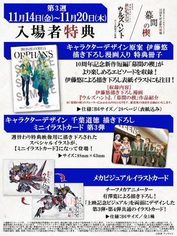 3週目の「週替わり特典映像」には、鉄華団&タービンズのキャラクター達が集合!第3弾の週替わり特典映像&入場者特典イラストを公開!
