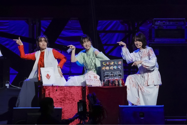 天津さんの呼び込みで、寺崎さん、金元さん、田村さんが登壇し、「幕間の楔」の感想を話したあと、パンフやアクリルスタンド、「仕事猫」とのコラボ商品など、多彩なイベントグッズの紹介が行われた。また、当日に発売されたグッズは事後通販が行われる予定とのことで、追加で購入したい来場者や参加できなかったファンの方はチェックしてほしい。