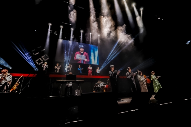 イベント中盤には、10周年記念新作短編の「幕間の楔」の生アフレコに、脚本を務めた岡田麿里さん書き下ろしの追加シナリオ+横山克さんバンドによる生演奏が重なったスペシャルステージが開幕。書き下ろしパート前半は、オルガとビスケットの会話シーンと、オルガと三日月の会話シーンが追加され、それぞれの絆を感じさせる内容。そこから「幕間の楔」本編映像&生アフレコへ。生演奏による迫力のサウンドと共に体感する映像は、よりキャラクターの心情や成長が伝わる内容となっていた。後半はキャラクターたちが順番にセリフ紡ぎ、静かに、しかしながら熱い余韻が心に残る構成となって展開された。