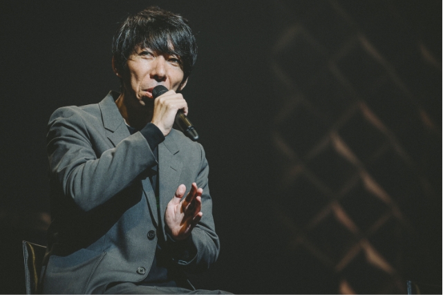 「楽しんでいただけましたか?」と澤野が観客に問いかけると、会場は大きな拍手に包まれる。前半パートでは第1章の楽曲が披露されたが、第1章から第2章にかけて「制作方法や音楽的に意識して変えた部分は特別ない」と答えた澤野。第1章をベースに、物語にあわせて変化をつけていったようだ。楽曲制作については「基本、任せてもらっている」と語る澤野は、村瀬修功監督から伝えられたイメージをもとに楽曲を制作していると明かし、「挿入歌以外は抑えめに」というリクエストがあったと振り返る。