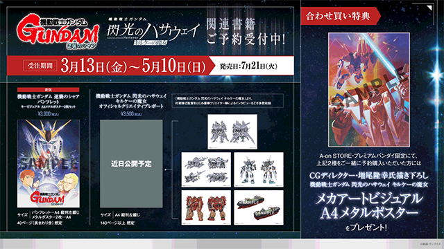 関連書籍「機動戦士ガンダム閃光のハサウェイキルケーの魔女オフィシャルクリエイティブレポート」「【新版】機動戦士ガンダム逆襲のシャアパンフレットキービジュアルA4 メタルポスター2 枚セット」7月下旬に同時発売!好評予約受付中!