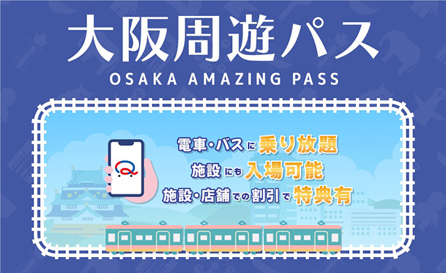 OsakaMetroをはじめとした大阪エリアの電車、バスに乗り放題の他、観光スポット約40ヶ所で入場も可能な大阪を遊び尽くすには最適なパスです。