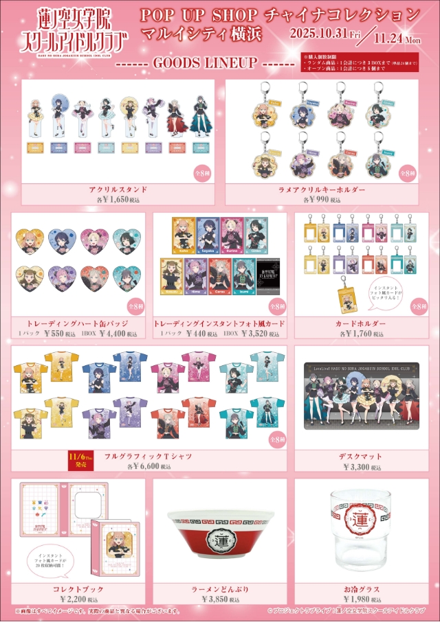 『ラブライブ!蓮ノ空女学院スクールアイドルクラブ』よりPOP UP SHOP ~チャイナコレクション~を、マルイシティ横浜4階イベントスペースにて、2025年10月31日(金)より2025年11月24日(月・休)までの期間限定で開催いたします。