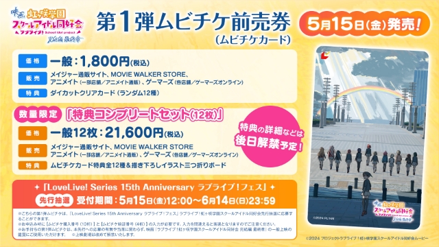 この度、本作の第1弾ムビチケ前売券(ムビチケカード)情報が解禁となりました。また、2026年11月14日(土)・15日(日)にバンテリンドーム ナゴヤにて開催の、シリーズ15周年を記念したライブ「LoveLive! Series 15th Anniversary ラブライブ!フェス」につきまして、本作のムビチケ前売券をご購入された方を対象とした、ラブライブ!虹ヶ咲学園スクールアイドル同好会先行抽選の実施が決定となりました。