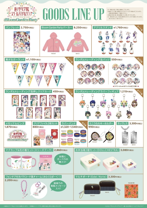 併せて劇場グッズ情報 も解禁となり、スクールアイドルクラブの面々で彩られたグッズが目白押しとなっています。パンフレットや映画劇中再現仕様された「Bloom Garden Partyパーカー」など全16アイテムが5月8日(金)より上映劇場にて販売されます。取扱商品は劇場ごとに異なりますため、ラインナップおよびその他詳細は公式サイト内GOODSページをご確認ください。