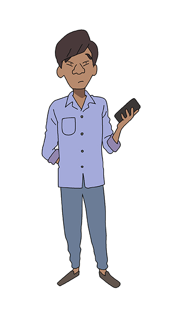 しんのすけたちが立ち寄った雑貨店バイト君。 店番中もスマホばかり見ているあまりやる気のない今時の若者。