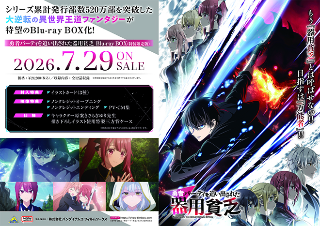 シリーズ累計発行部数520万部を突破した大逆転の異世界王道ファンタジー『勇者パーティを追い出された器用貧乏』のBlu-ray BOXが、2026年7月29日に発売決定しました。対象店舗にて本商品をご購入いただいた方を対象とした、購入特典をご案内します。