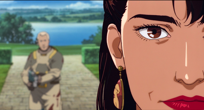 現実のように見えるまがい物の料理、草原の中に見え隠れする美女の映像など、次第に非現実性が高まっていく緊迫感が大きなみどころだ。題名の「彼女」とは「オペラ歌手エヴァ」のことなのだが、その妄執がやがてクルーを巻きこんでいく。精神に直接影響するサイコサスペンスの恐怖と、プッチーニのオペラ「蝶々夫人」などのモチーフを交えた菅野よう子の壮大なクラシック音楽が一体化する幻惑感は、他に類を見ないものだ。