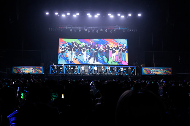 KICK OFF!の文字がスクリーンに映し出され、オープニングムービーが流れると、客席は青を中心に色とりどりのペンライトの光で埋め尽くされた。そして、キャラクター紹介VTRに合わせて、浦 和希さん(潔 世一役)、内山昂輝さん(糸師 凛役)、島﨑信長さん(凪 誠士郎役)、河西健吾さん(乙夜影汰役)、古川 慎さん(烏 旅人役)、海渡 翼さん(蜂楽 廻役)、小西克幸さん(蟻生十兵衛役)、斉藤壮馬さん(千切豹馬役)、仲村宗悟さん(我牙丸 吟役)、内田雄馬さん(御影玲王役)、三上瑛士さん(氷織 羊役)、興津和幸さん(剣城斬鉄役)が、1人ずつステージ上に姿を現す。河西さんが乙夜の「ばきゅん」ポーズをしたり、仲村さんがゴールキーパーの我牙丸らしい両手を広げたポーズを決めたりと、個性あふれる登場の仕方を披露し、会場を大いに沸かせた。