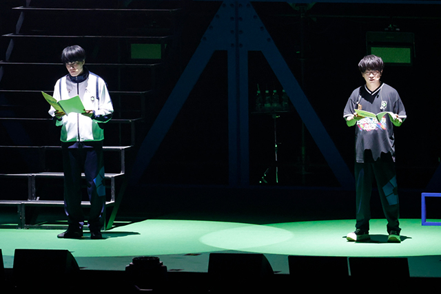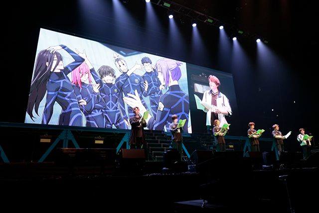 続いては、浦さん・内山さん・海渡さん・斉藤さん・仲村さん・島﨑さん・内田さん・興津さんが参加する朗読劇へ。アニメ第2期の最終話の凛が潔にライバル宣言をするシーンと、その後の祝勝パーティーの様子などが語られた。雷市陣吾(CV:松岡禎丞)と五十嵐栗夢(CV:市川 蒼)も登場してチームZメンバーが互いの健闘を称え合う。一方の凪と玲王は、ハイテンションの斬鉄が乱入したおかげもあって気まずさが消え、思いの丈を打ち明ける。そしてラストは、凛と潔の「世界一のストライカーになるのは俺だ……!」というセリフで熱く締めくくられた。