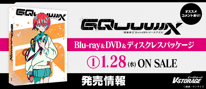 TV放送開始から10か月ほど、劇場先行版の公開からですと1年経ちまして、時間の流れの速さに驚きつつ、ついに皆様に『GQuuuuuuX』のBlu-ray&DVD&ディスクレスパッケージをお届けできます!描き下ろしイラストが目を引く収納ボックスやデジジャケット、今回のパッケージのために書き起こされたドラマCDなどぜひ手に取って聞いて楽しんで頂けたらと思います!