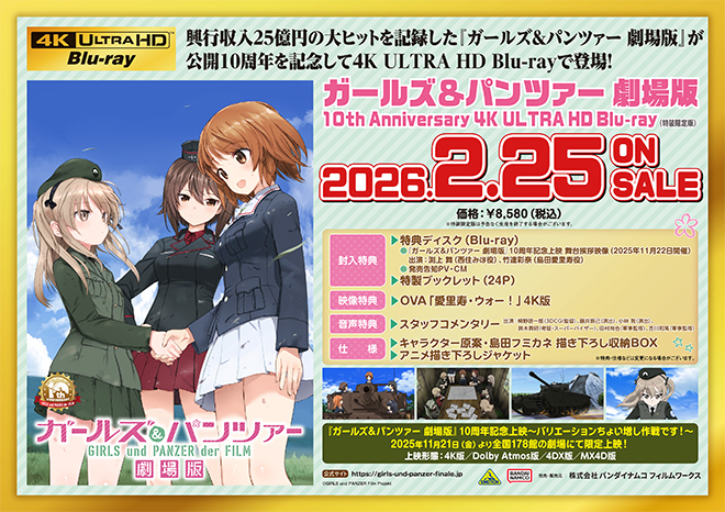 関連記事:『ガールズ&パンツァー 劇場版』公開10周年記念!4K ULTRA HD Blu-ray発売決定!