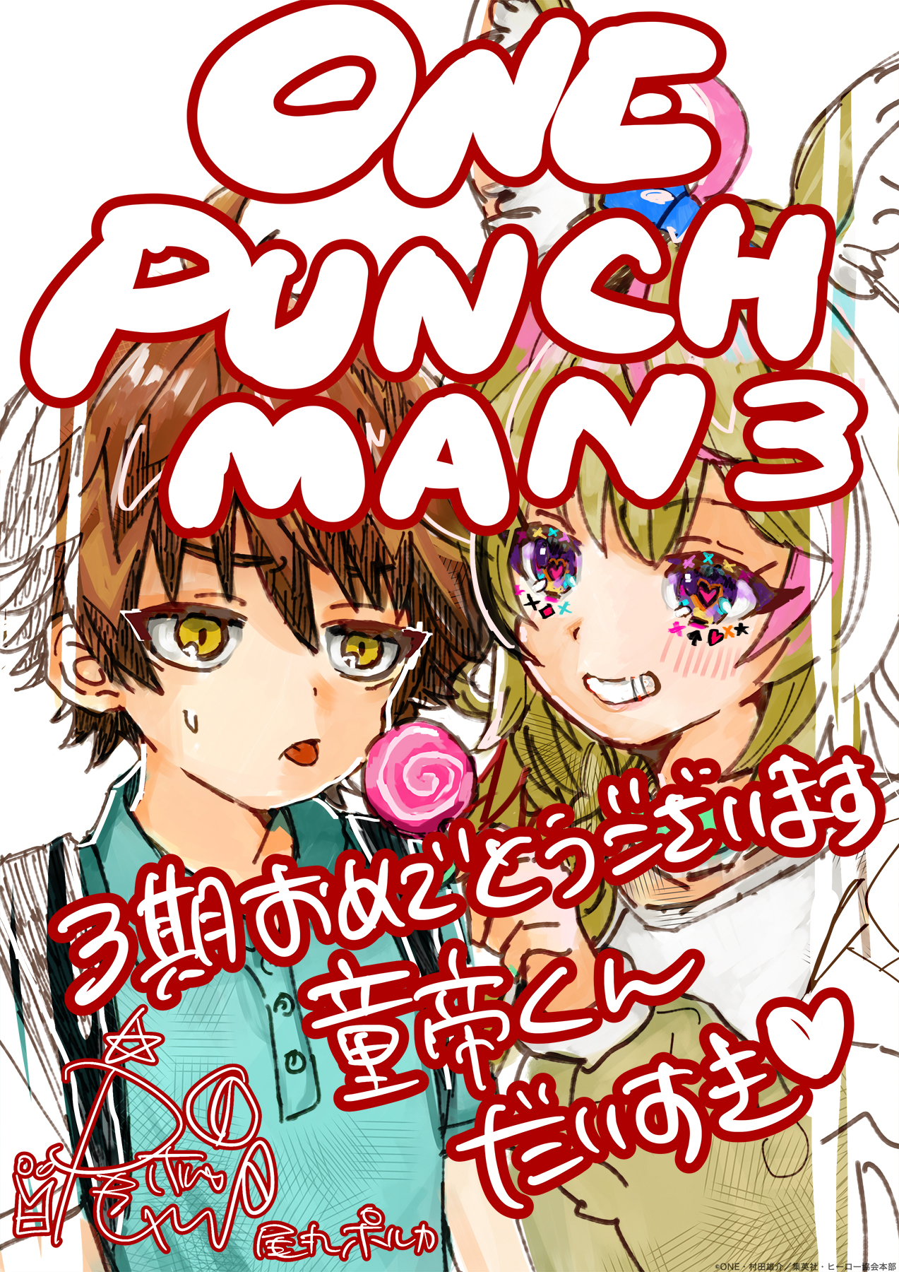 『ワンパンマン』第3期の放送を記念して、VTuberの尾丸ポルカさんに応援イラストをいただきました!
