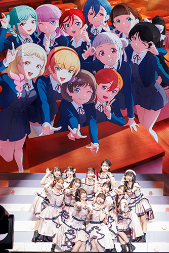 自己紹介の後、伊達が「『OPEN THE G☆TE!!!』からたくさん歌声を聴かせてくれてありがとう~!」と呼び掛け、横浜の雪を吹き飛ばす勢いで「What a Wonderful Dream!!」をトロッコに乗って歌唱。その後、鈴原、薮島、大熊、絵森、結那、坂倉の2期生・3期生6人で「High!モチベーション」をイキイキと歌唱し、会場中に元気を届けた。